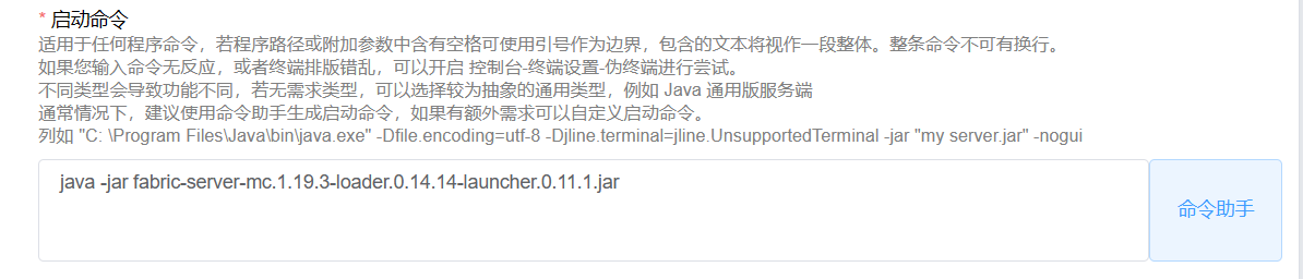 改写为:java -javaagent:authlib-injector-1.2.1.jar=https://www.bbsworld.top/api/yggdrasil -jar fabric-server-mc.1.19.3-loader.0.14.14-launcher.0.11.1.jar