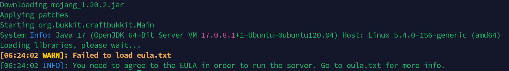 不出意外的话,第一次启动无法运行服务器,需要我们同意Eula协议。
