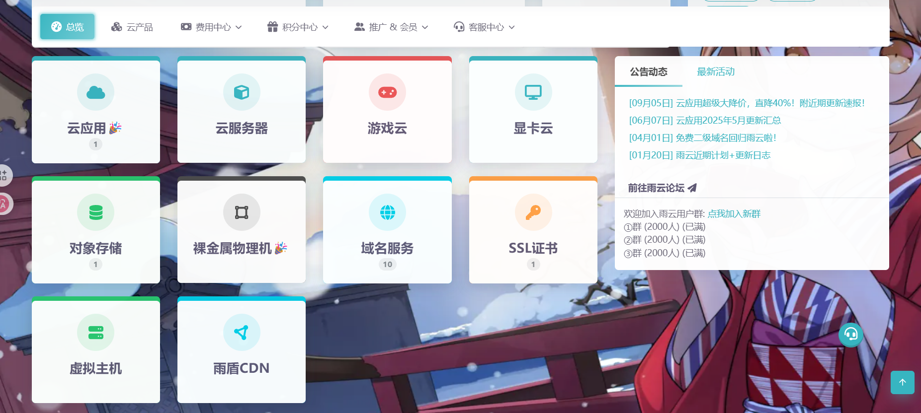 有云服务器、游戏云、显卡云、CDN、域名注册等多种服务,近期也上新了云应用,可以一键部署。社区环境好,论坛可以找到很多教程。服务质量和稳定性都不错,推荐。