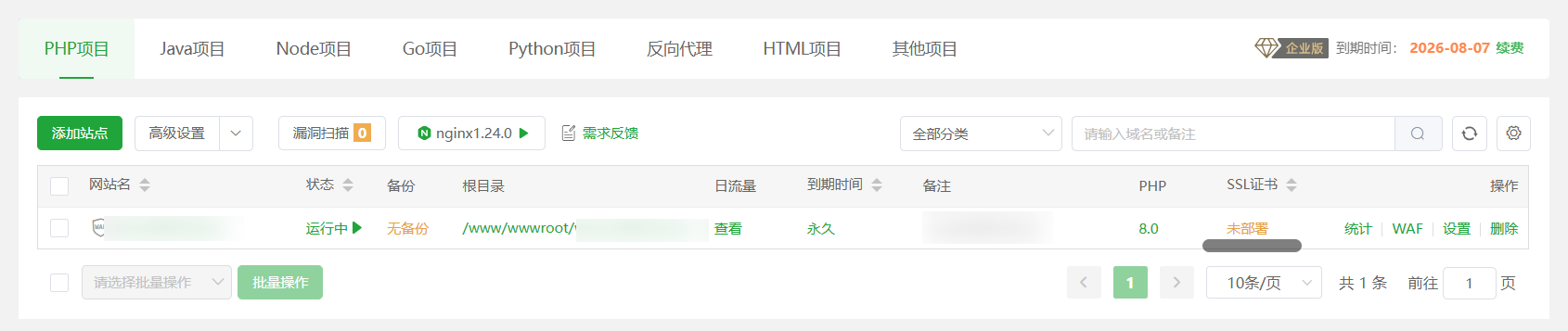 一键部署好后,不要在宝塔中配置SSL证书,让它保持最原始的样子~