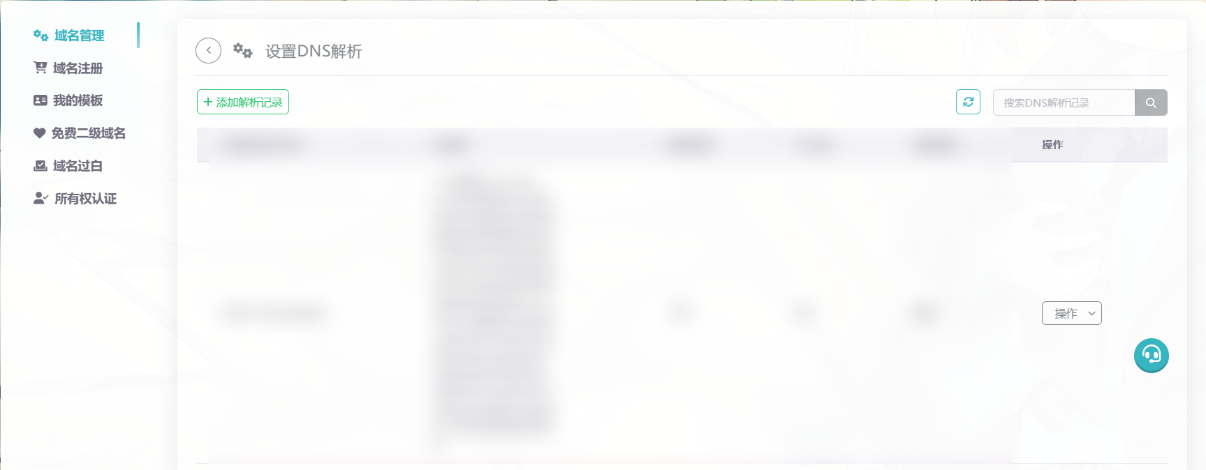 点击操作中的小地球(DNS解析),即可进入DNS解析界面。你可以自由地设置你的DNS记录!