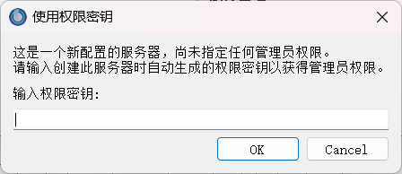 输入完毕以后,由于我们是首次登录,需要输入服务器密钥以获得teamspeak的管理员权限。密钥就是上面的token: