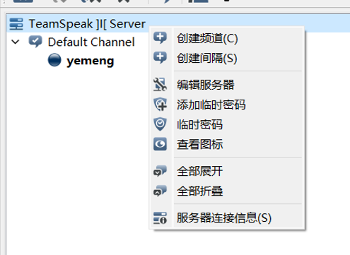 使用成功以后,当前用户就是这个teamspeak服务器的管理员了,拥有最高权限。你可以自行添加频道或者进行其他操作。