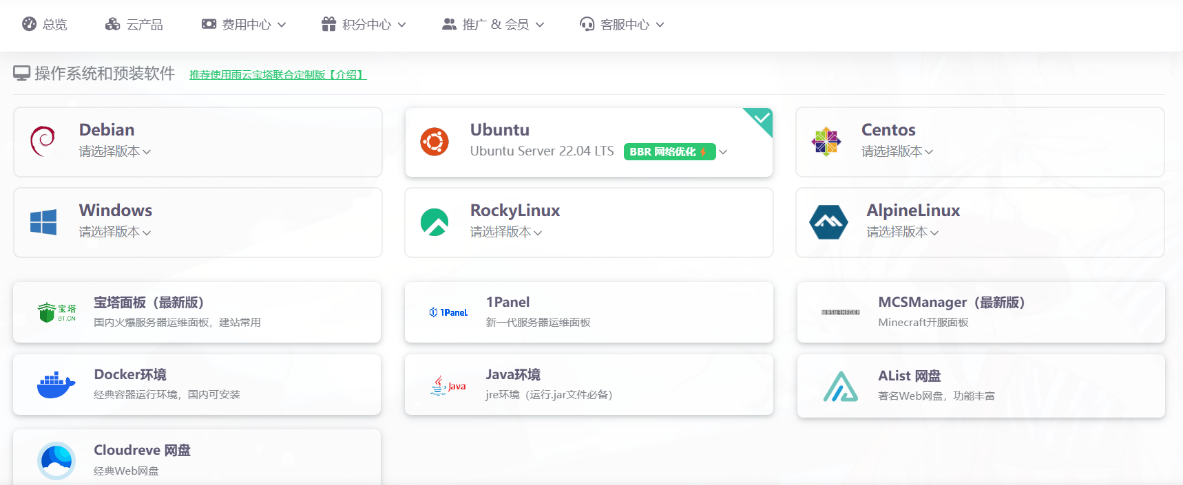 夜梦这里使用雨云进行演示,使用夜梦的链接注册可以获得首月5折优惠券以及长期九折优惠券。直达链接:https://www.rainyun.com/