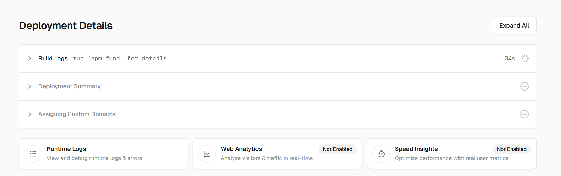 等待vervel部署好(要等待一会儿)。